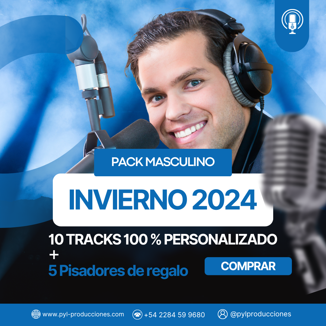 Con una voz elegante, potente te ofrecemos 10 tracks 100% personalizado y editados con la música que identifica tu radio. A demás 5 pisadores de regalo.